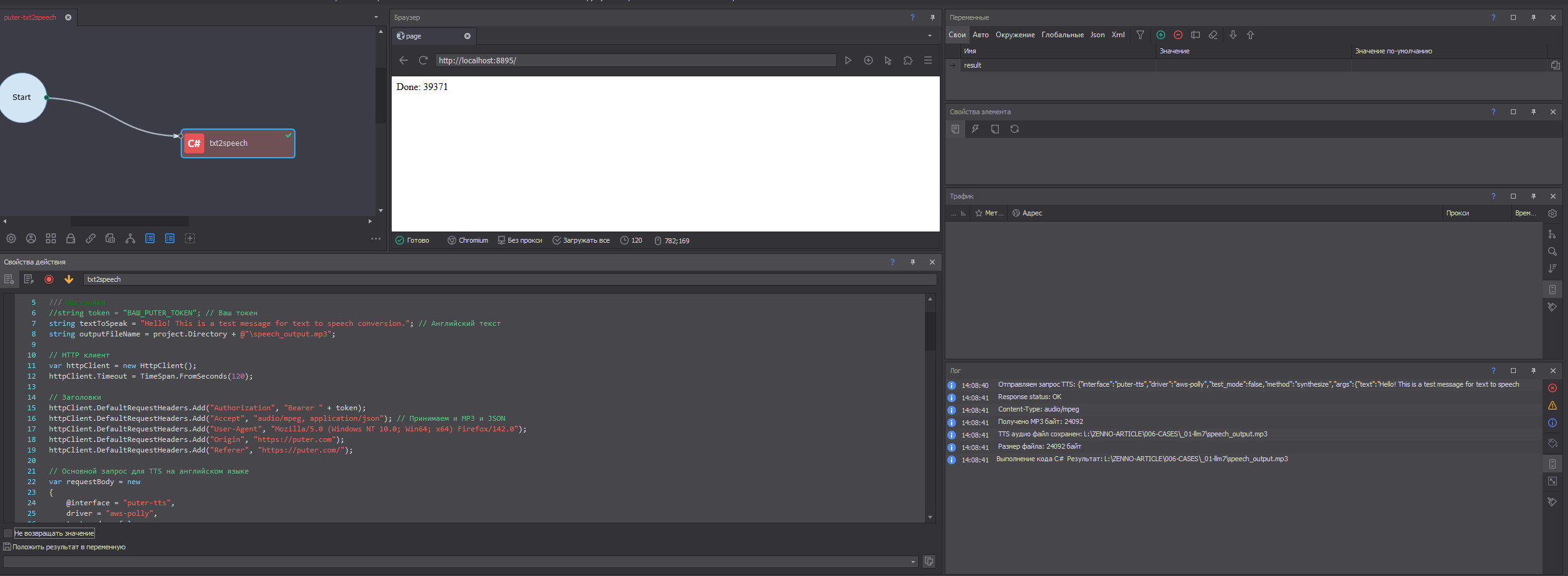 Правда, это больше расчитано на внедрение в сайты и приложения с помощью библиотеки puter.js, поэтому я позвал на помощь моего нейропомощника ДОДИКа (ДОрогой Добрый Искусственный Калека, тьфу ты, Коллега) и вдвоём запустили на Zennoposter сначала чат со всеми моделями, а затем и генератор картинок (очень шустрый), правда сохранять картинки не получается почему-то, и генерятся они через браузер. Может быть, опытные коллеги с форума с этим смогут помочь.