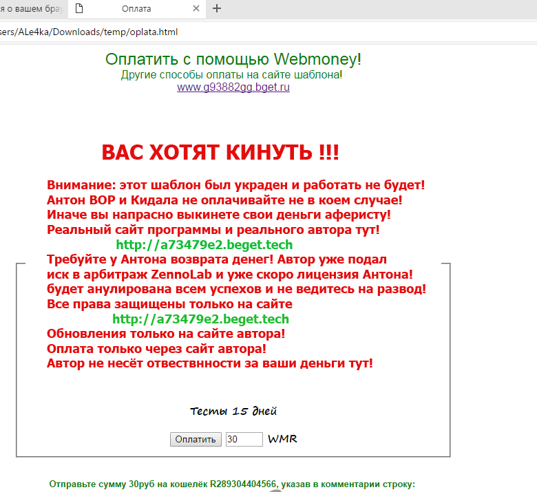 А еще, что реальный автор судя по всему оставил себе возможность вносить изменения в работу шаблона после передачи клиенту. Тоже интересный знак ....