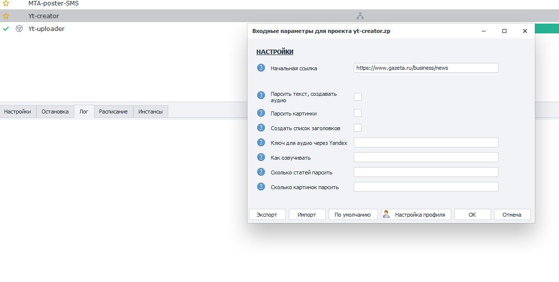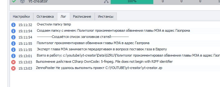 Для этого пришлось переделать шаблон для создания видео - был взят другой новостной ресурс, и убрана функция создания видео из презентации PowerPoint, которая была специально сделана для демонстрации возможностей ZennoPoster'а
