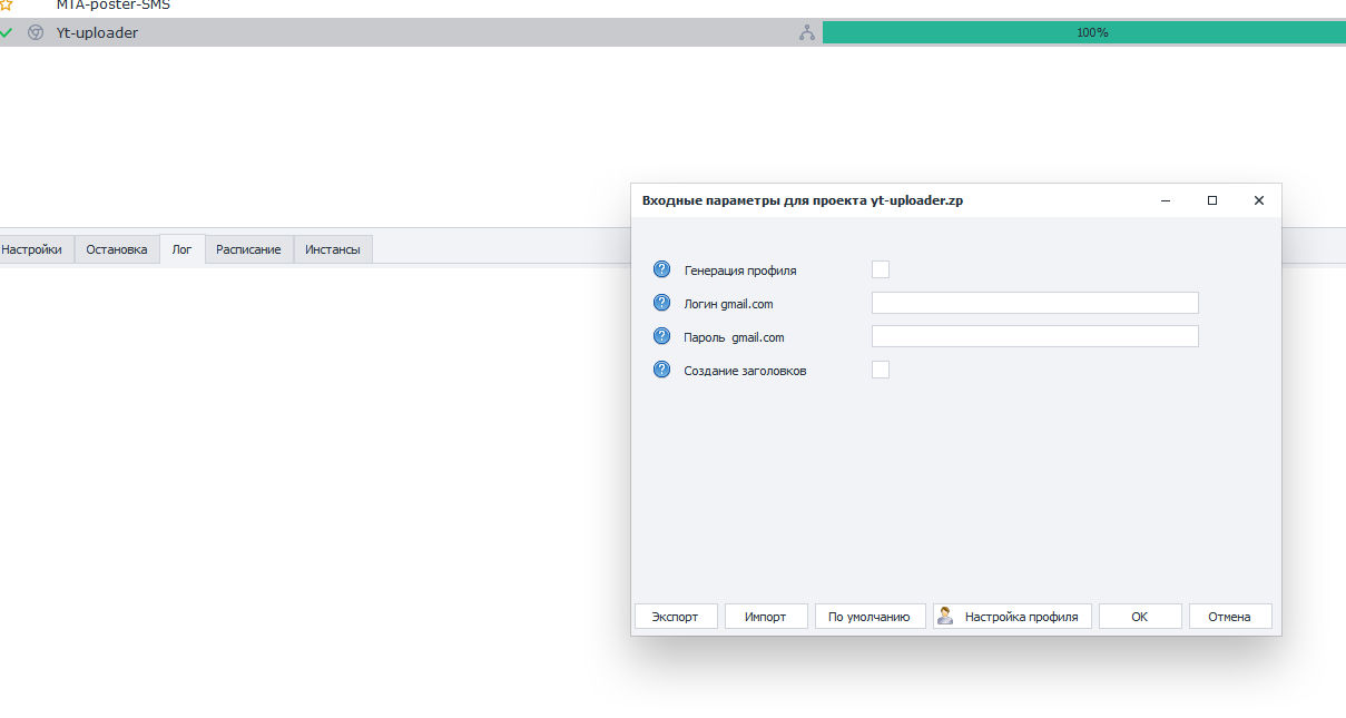 При запуске шаблона вы выбираете Создать профиль, вводите данные gmail.