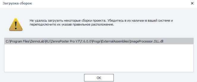 Сам нашел)) почему-то, в архиве файл с именем ImageProcessor.dll а проект требует ImageProcessor.DLL.dllпри запуске шаблона выдает такую ошибку (версия 7.6.0.0, dll по этому пути лежитПосмотреть вложение 86648