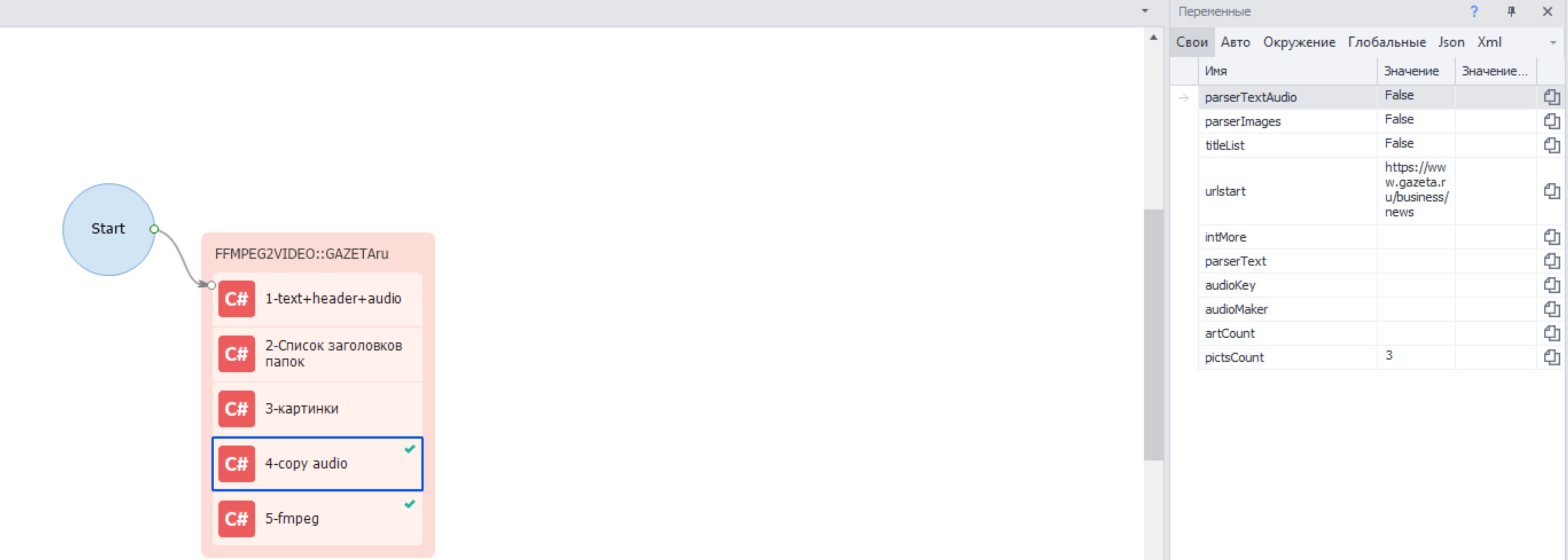 заполнил файлы header и text. Для своего проекта хочу использовать только кубик 4 и 5. Они выполняются успешно, но в логе пишется "Выполнение кода C# Результат: stop".Видео не создается. Посмотрите пожалуйста, чего еще не хватает.