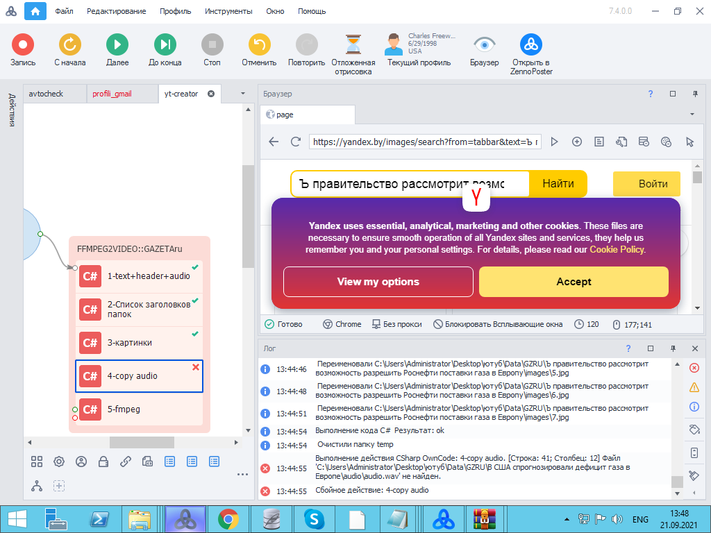 4-й кубик копирует audio.wav из папки со статьёй в папку temp.и что интересно,озвучка идет и через винду и через яндекс,но ошибка на 4 кубике сохранилась