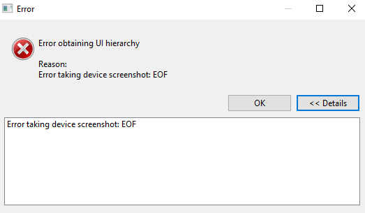 У кого-нибудь была такая ошибка? Вылазит при попытке обновления в uiautomatorviewer, но только на некоторых страницах приложения