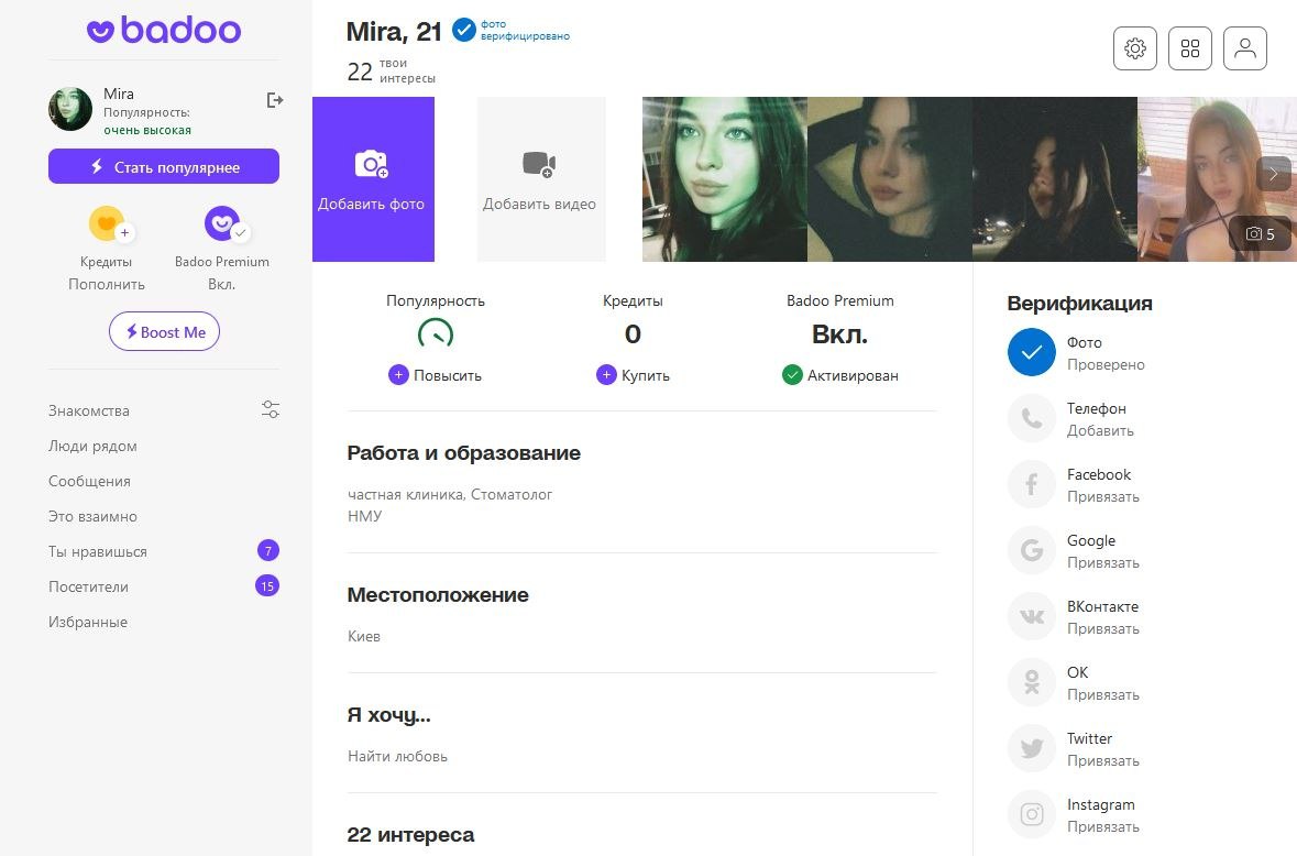 Продам верифицированные аккаунты Badoo и Bumble.