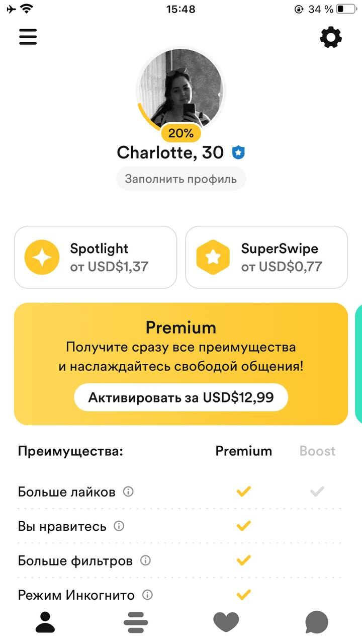 1. Верифицированные аккаунты Badoo/Bumble.