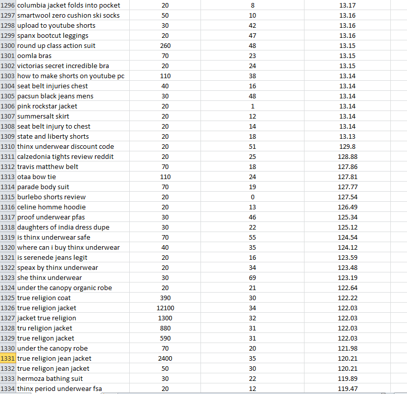Clothes (US) - 1,553,401 кейворд. United States. Semrush. Июнь 2023. Men's and women's clothes. Было использовано много слов, фраз и стоп слов. Semrush Volume (среднее кол-во поисков ключевого слова в месяц), Semrush Keyword Difficulty (конкуренция по ключевому слову), Adsense Cost-per-click (если есть). Цена - $20