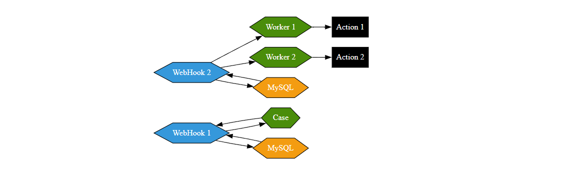 Как результат Case_4 может быть запущен на разных серверах, а Worker_1 и Worker_2 будут работать на одном сервере.