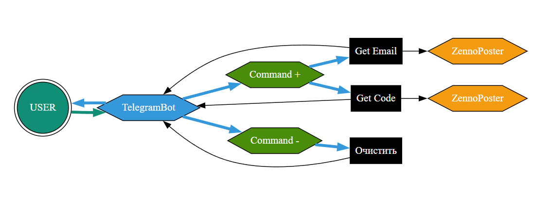 А пользователь посредством телеграм будет передавать команды на исполнение Зеннопостеру.