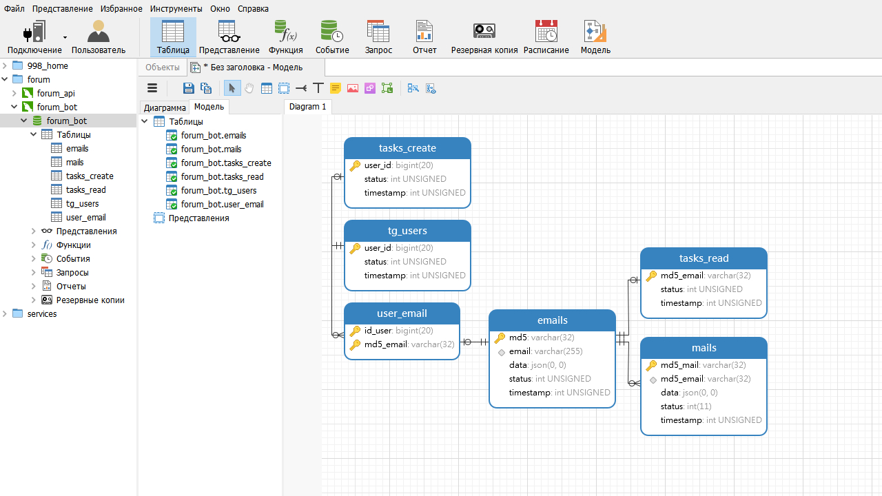 Вот примерно так у меня выглядят таблички, которые обслуживают базу данных.