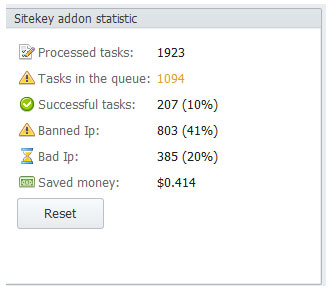 I reset sitkey addon statistic for 2 days