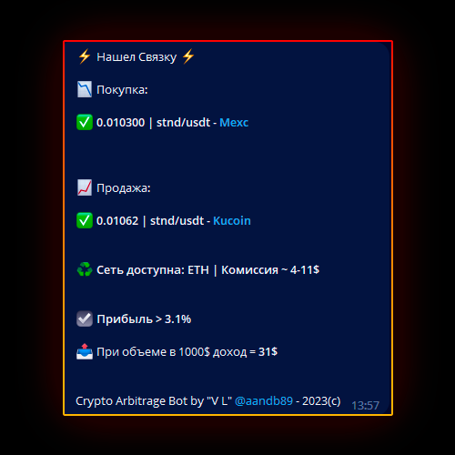 ⚡ Бот для Межбиржевого Арбитража Криптовалют "Crypto Arbitrage Bot by V L @aandb89"