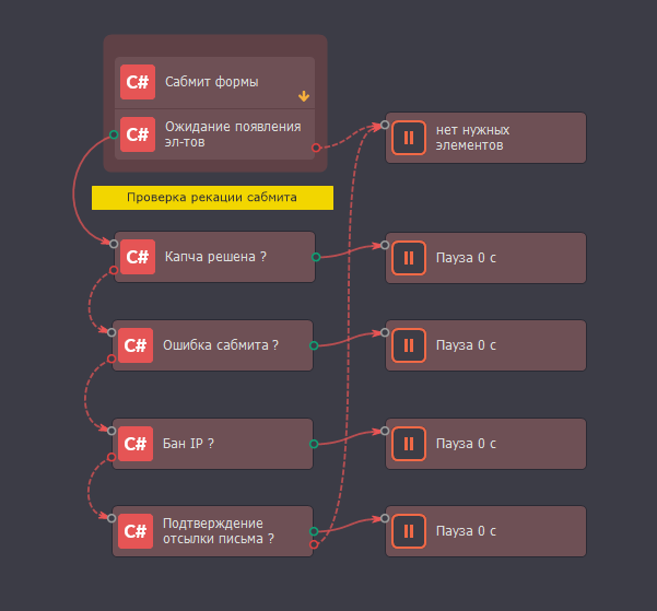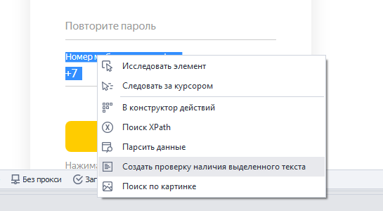 PS: Пробовал через парсер данных, но если на странице нет слова SMS то шаблон ломается, а в идеале хочется чтобы при имеющим слове sms шаблон останавливался и выводил в лог "запрос телефона, пробую с начала" и шаблон заканчивал свою работу.