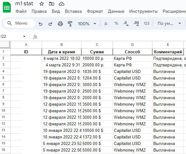 Пример таблицы для партнерки M1