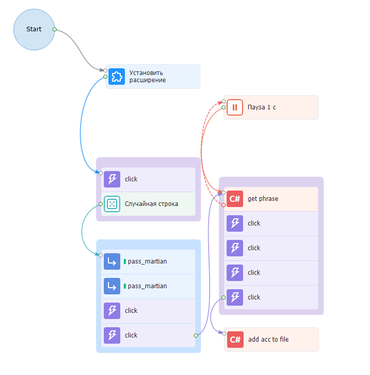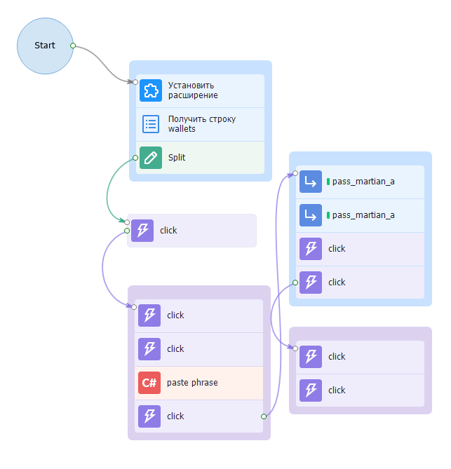 Authorization - in authorization template, we take the account from file and insert phrase, paste password and log in