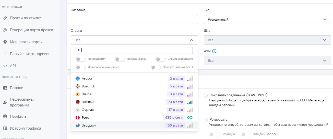 ткните пожалуйста меня в скрин) При выборе мобильных вижу РФ, при выборе резидентских нет(Посмотреть вложение 100023