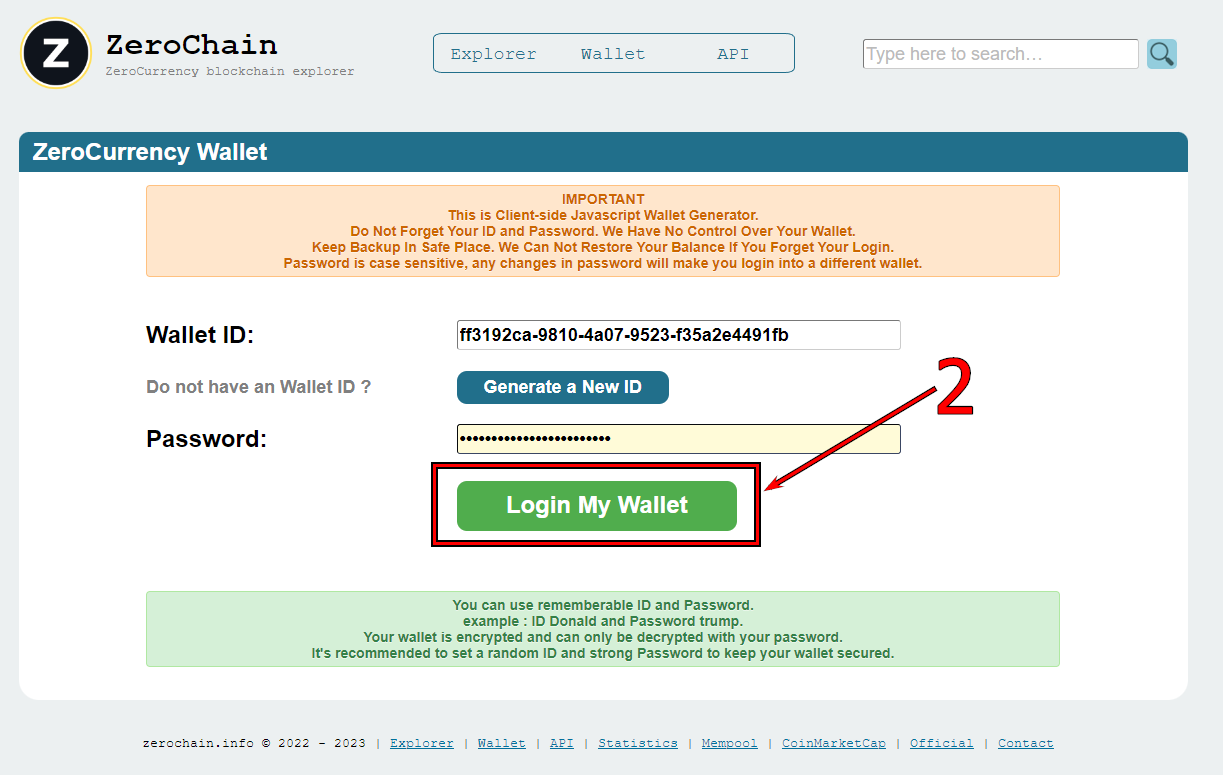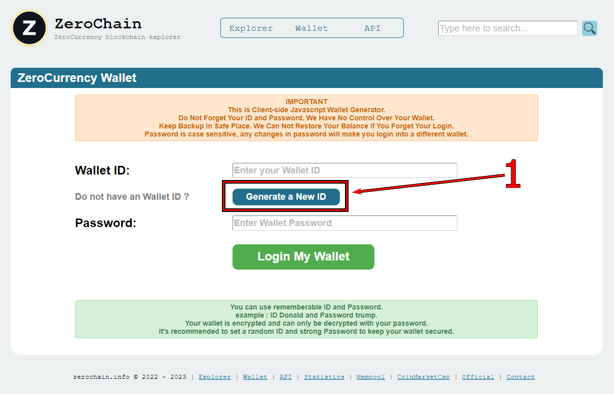 Обязательно сохраняем приватные ключи к кошельку, так как они хранятся только на стороне клиента, так же не забываем сохранить сгенерированный ID и пароль от входа в кошелек