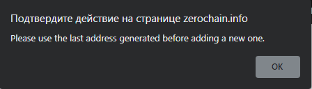 Перевод: Пожалуйста, используйте последний сгенерированный адрес перед добавлением нового.