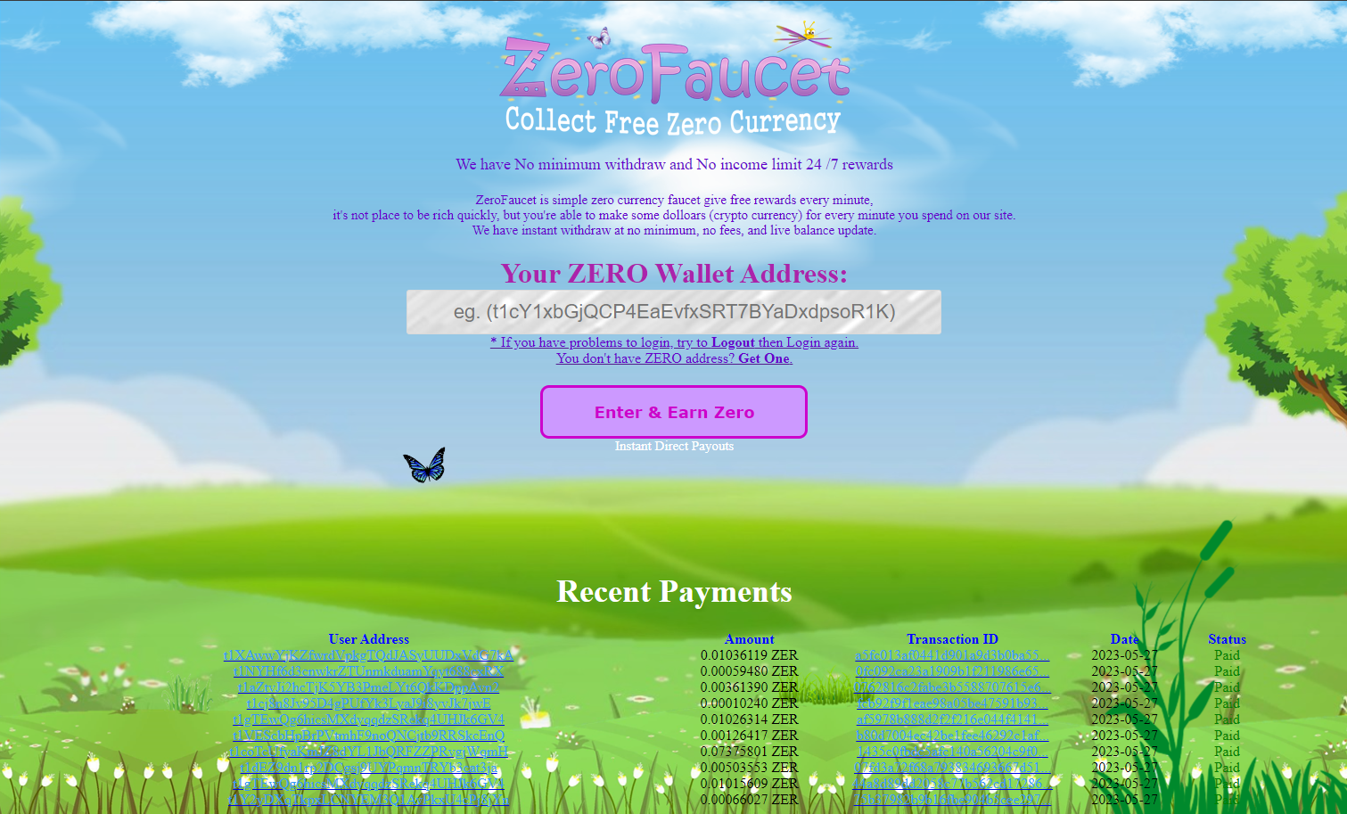 Красота, не так ли? Через VPN работает - проверял у себя в браузере через Touch VPN, не посылает куда подальше, с паблик проксями с чекера тоже работает, хоть прокси живут не долго, но это как вариант для новичков, которым нужен халявный старт. На сайте есть система уровней, максимальный 1000 уровень, с каждым уровнем получаем все больше и больше криптовалюты ZER. Минимальная выплата всего 0.00001000 и прошу заметить без комиссий, выплата мгновенная на кошелек. Круто не правда ли?