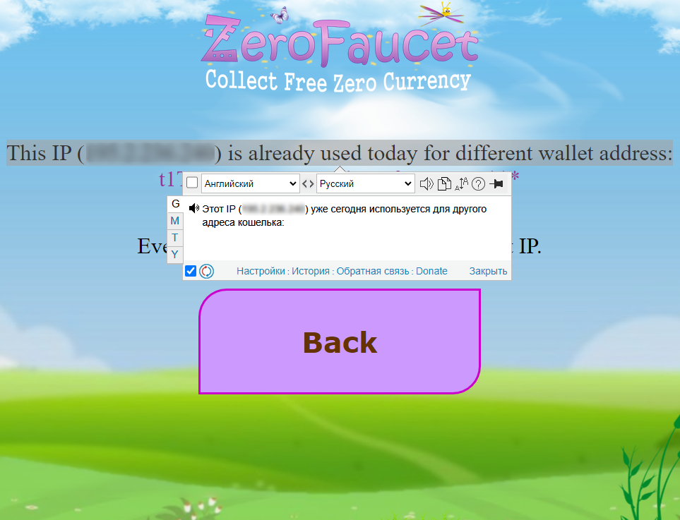 который ее раздает бесплатно. Начал изучать сайт, и тут нашлось куча плюсов, раздача каждую минуту, бывает две минуты, проксями пользоваться можно, 1 кошелек = 1 прокся иначе нам выдаст следующее: