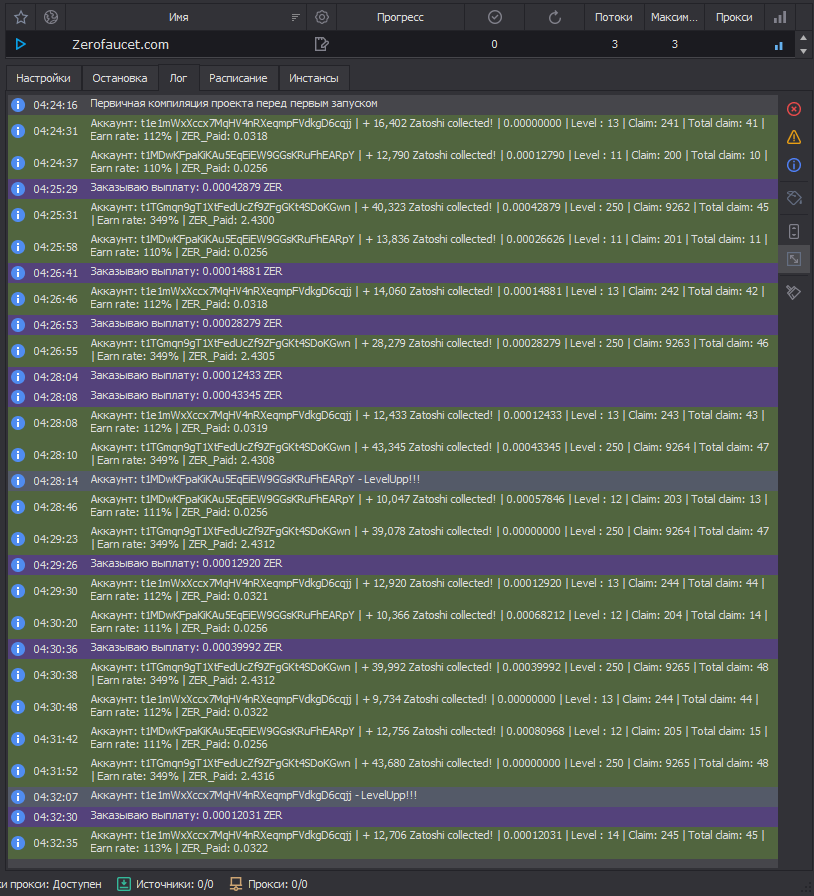 Добыча монеты ZERO (криптовалюта) с помощью ZennoPoster