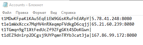 в файл Accounts нужно добавить аки и прокси вида: wallet|proxy