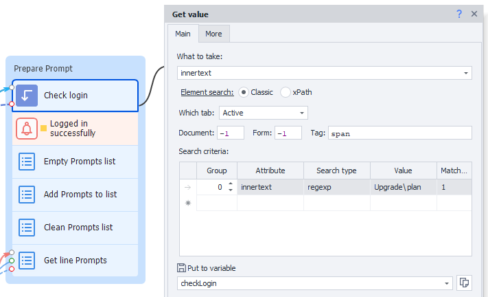 Before submitting the prompt, the template checks whether ChatGPT is currently busy. This step is crucial to avoid submission failures or delays, as it ensures the system is ready to process the next prompt.