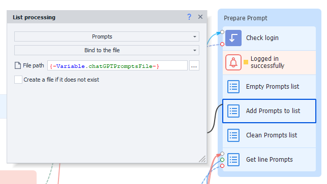 The template loads a list of prompts from an external file, organizing them into a list ready for processing. This step ensures that the prompts are handled efficiently and systematically.