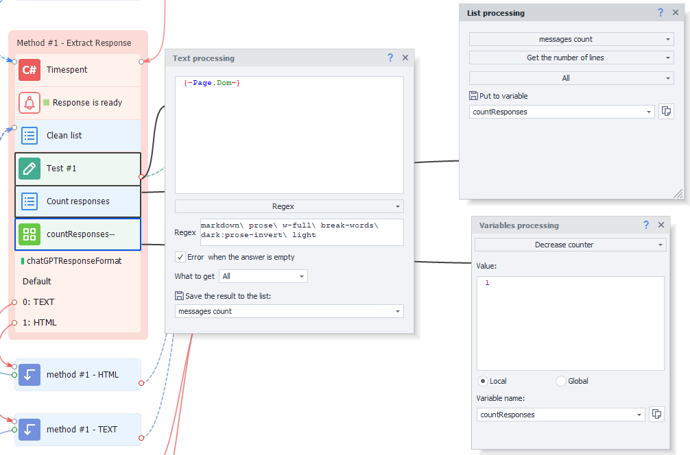 • Retrieving the Last Response: By calculating the total number of responses and adjusting the extraction process, the template ensures the most recent response is accurately retrieved.