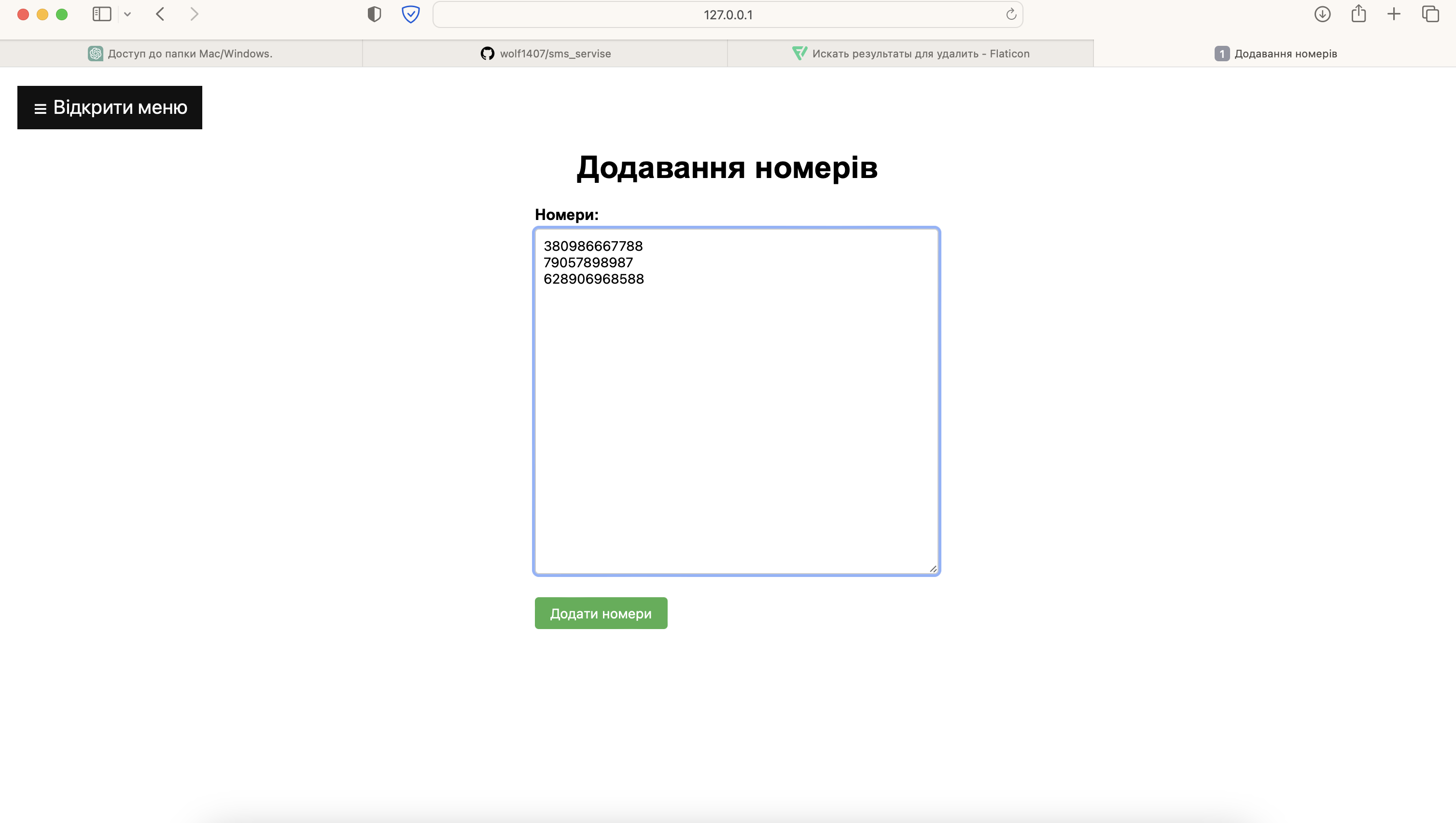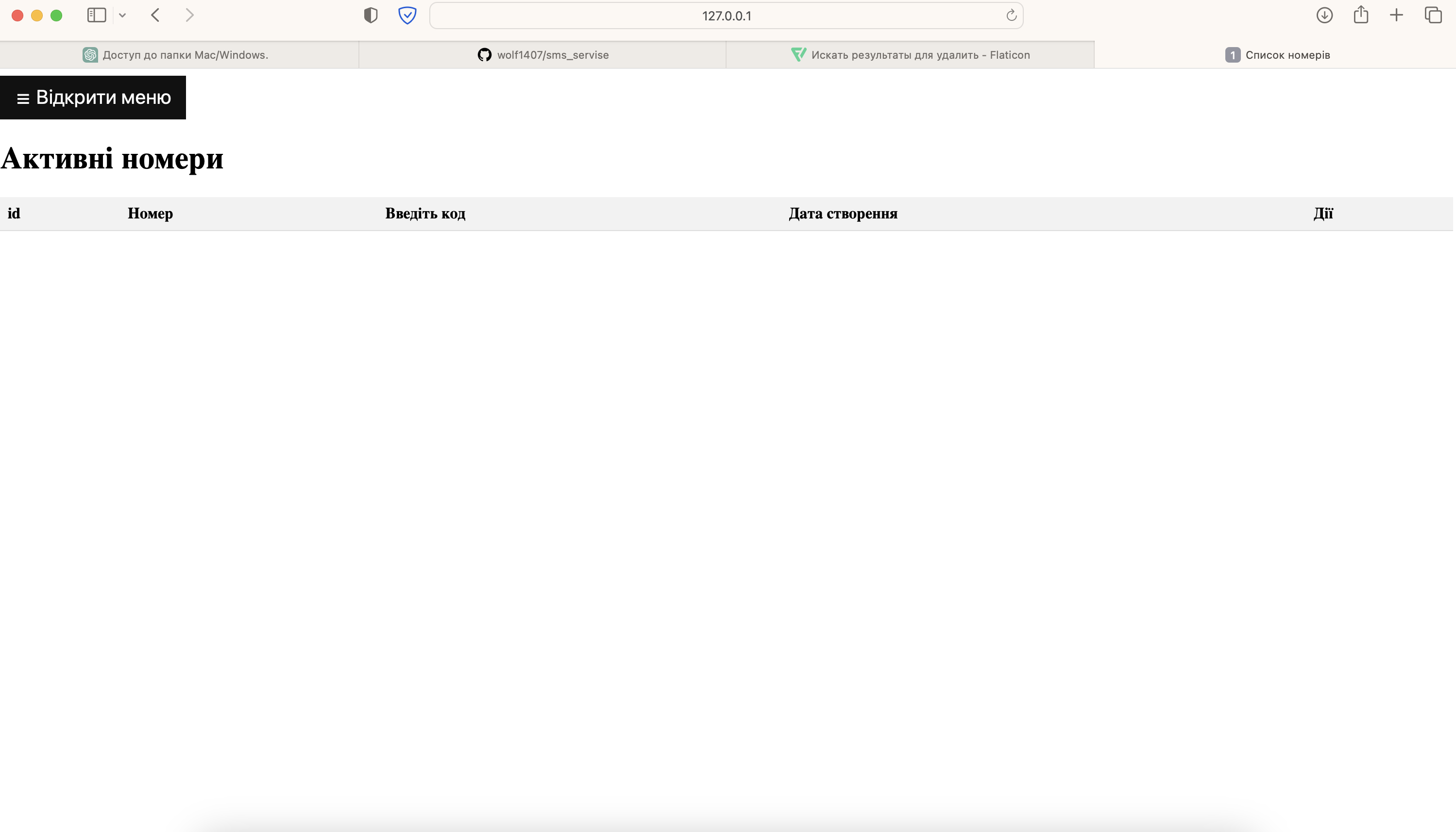 3. Теперь в http://127.0.0.1:5000/all вкладке все номера будут отображены все добавлены номера, их статус.