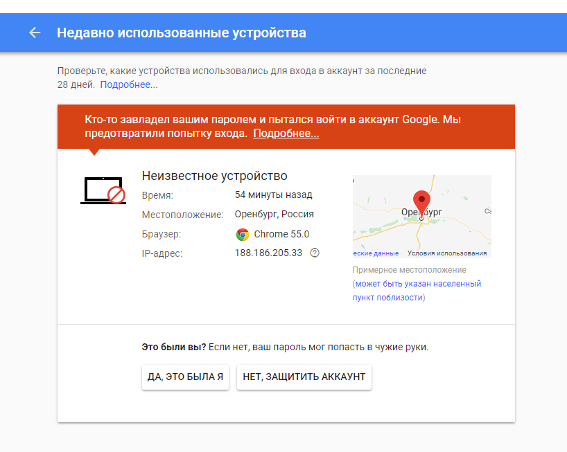 Приветствую. Акки гугл я не регистрирую, мне их поставляют разные люди и с годами и месяцами они переодически меняются, кто-то уходит, кто-то приходит новый. В магазине в правилах и к описанию к товару я все расписал о том, чтобы после покупки меняли все доступы, дабы избежать потом недопонимания и проблем, так как отвечать за всех поставщиков не могу и знать что у них на уме тоже. Сегодня они работают честно, потом уходят ,а потом через время аккаунты угоняют, это так, для примера. Поэтому и расписал все, чтобы после покупки меняли данные, чтобы потом не было претензий, всех и всё, понятное дело, контролировать невозможно, поэтому и остается единственный выход после покупки менять все доступные способы доступа.Сегодня кто-то ломится по моим гугл-акках купленным у вас еще в 05.2016, но поскольку резервную почту я там изменил, то гугл блокирует вход с оповещением на резервную почту. После входа в акк замечаю такое: