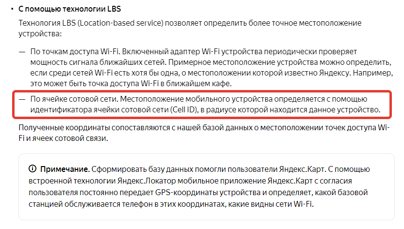Мы прикрепили скрин с официальной документации сайта яндекса.Обычным сайтам такая информация не доступна, выше описывал примеры как получают информацию о БС. Не вводите пользователей в заблуждение, если не можете подтвердить.