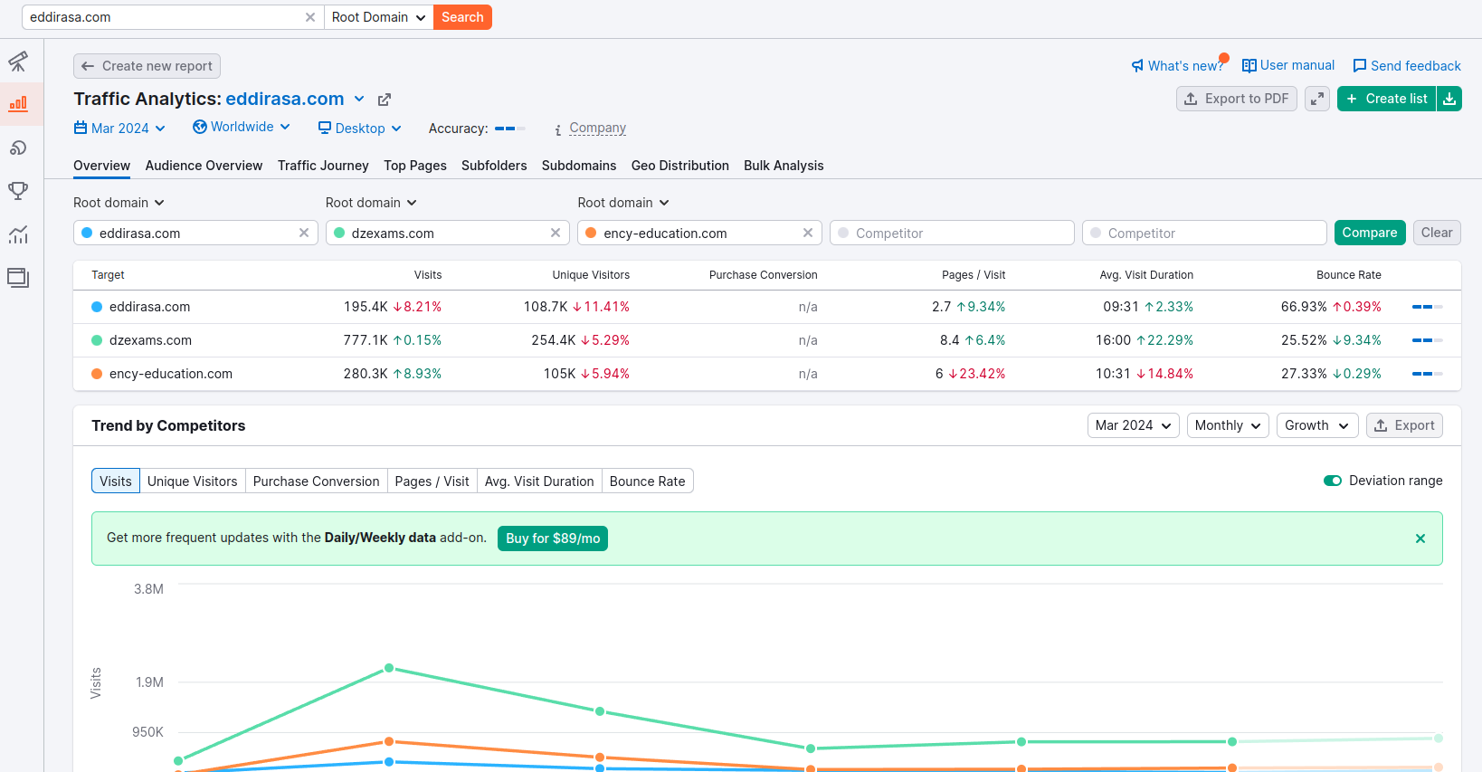 Из любопытства, я задался вопросом, как эти веб-сайты могут попадать в топ поисковых результатов?! Я изучил топ-рейтинговые образовательные веб-сайты в своей стране с помощью Semrush, изучая их контент, метрики вовлеченности пользователей и дизайн. Несмотря на высокий рейтинг в поиске, многие страдают от плохого пользовательского интерфейса, что приводит к высокой отказоустойчивости. Кроме того, я отметил низкую сложность ключевых слов, связанных с их рейтингами. Это различие между поисковой производительностью и пользовательским опытом вдохновило идею создания веб-сайта, который превосходил бы в обоих аспектах, заложив основу для инноваций.