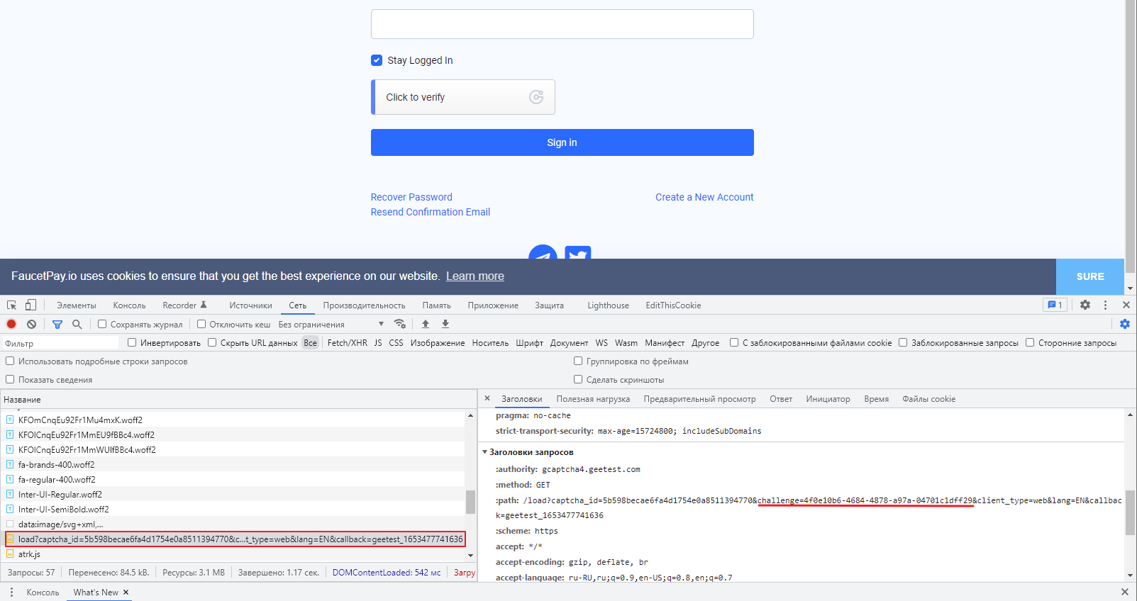 Вопрос: как получить параметр challenge на этом сайте?