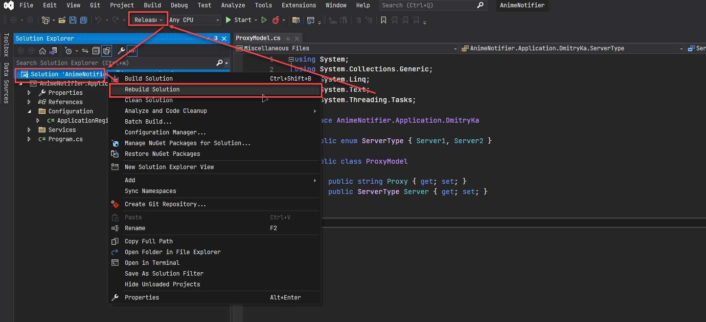 Чтобы что-то скомпилировать напрямую в проекте, нужно все вручную перебрать.
