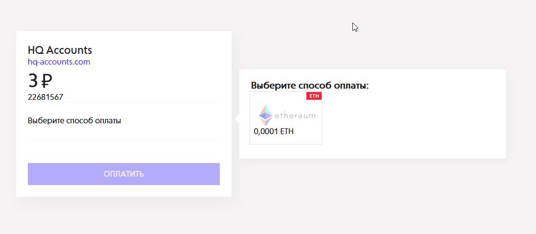 Как оплачивать у вас? Выбираю разные способы, выходит только один, эфириум.