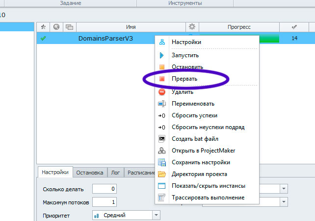 • Видите, что набралось достаточное количество доменов в файле \Out\Temp.txt. Прерываете выполнение шаблона.