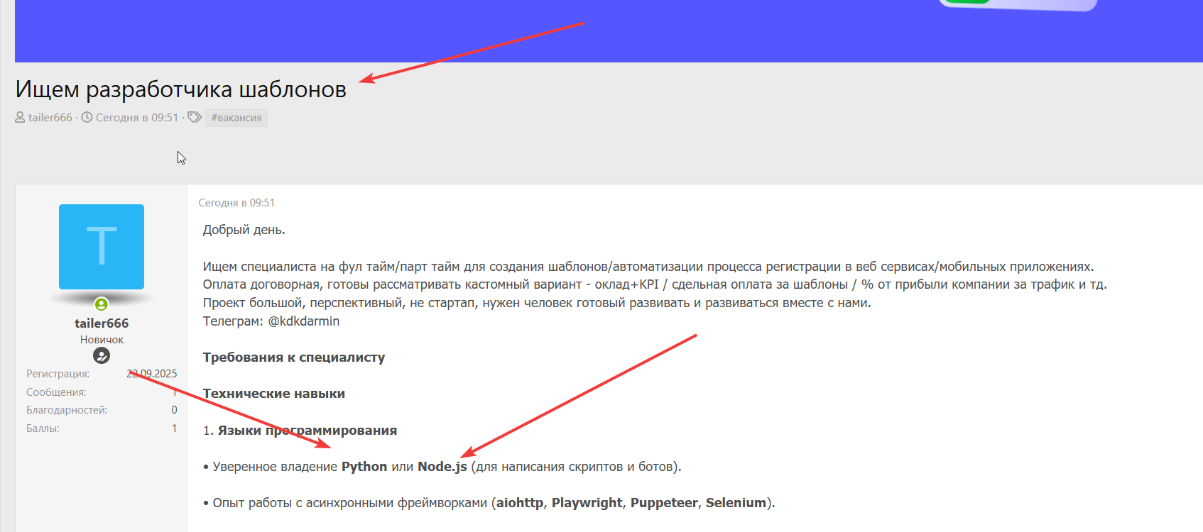 Ищем специалиста на фул тайм/парт тайм для создания шаблонов/автоматизации процесса регистрации в веб сервисах/мобильных приложениях.