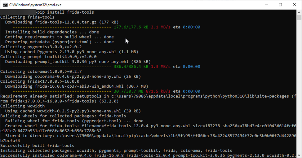 2. Открываем консоль windows и пишем в ней «pip install frida-tools»