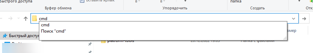 Далее из папки, где лежит наш новосозданный скрипт, запускаем командную строку (Как мы делали в случае с platform tools) и пишем команду: