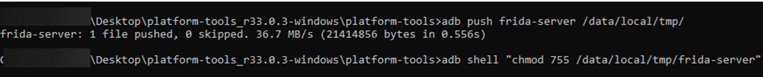 - adb shell "chmod 755 /data/local/tmp/frida-server"