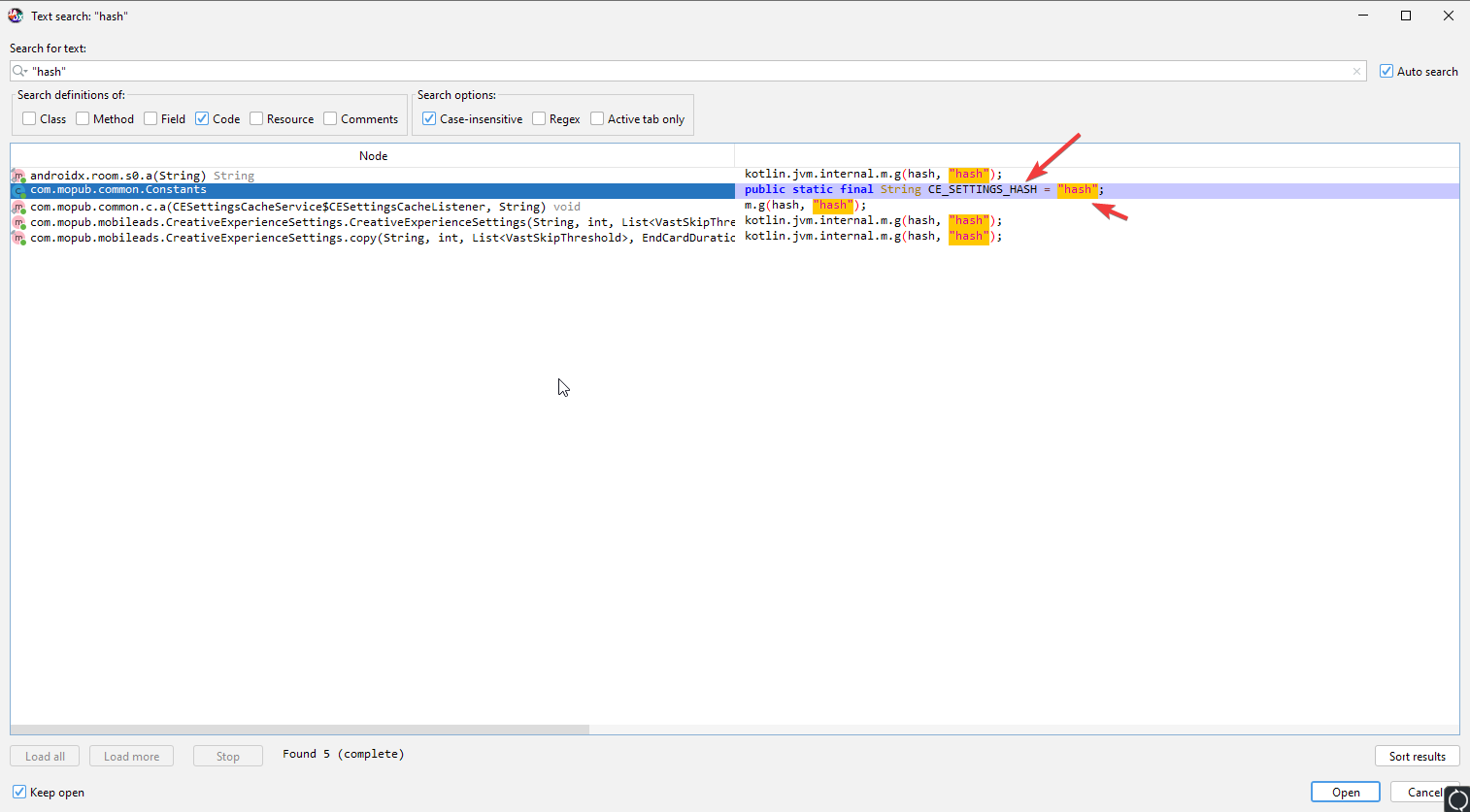 В JADX есть опция поиска: