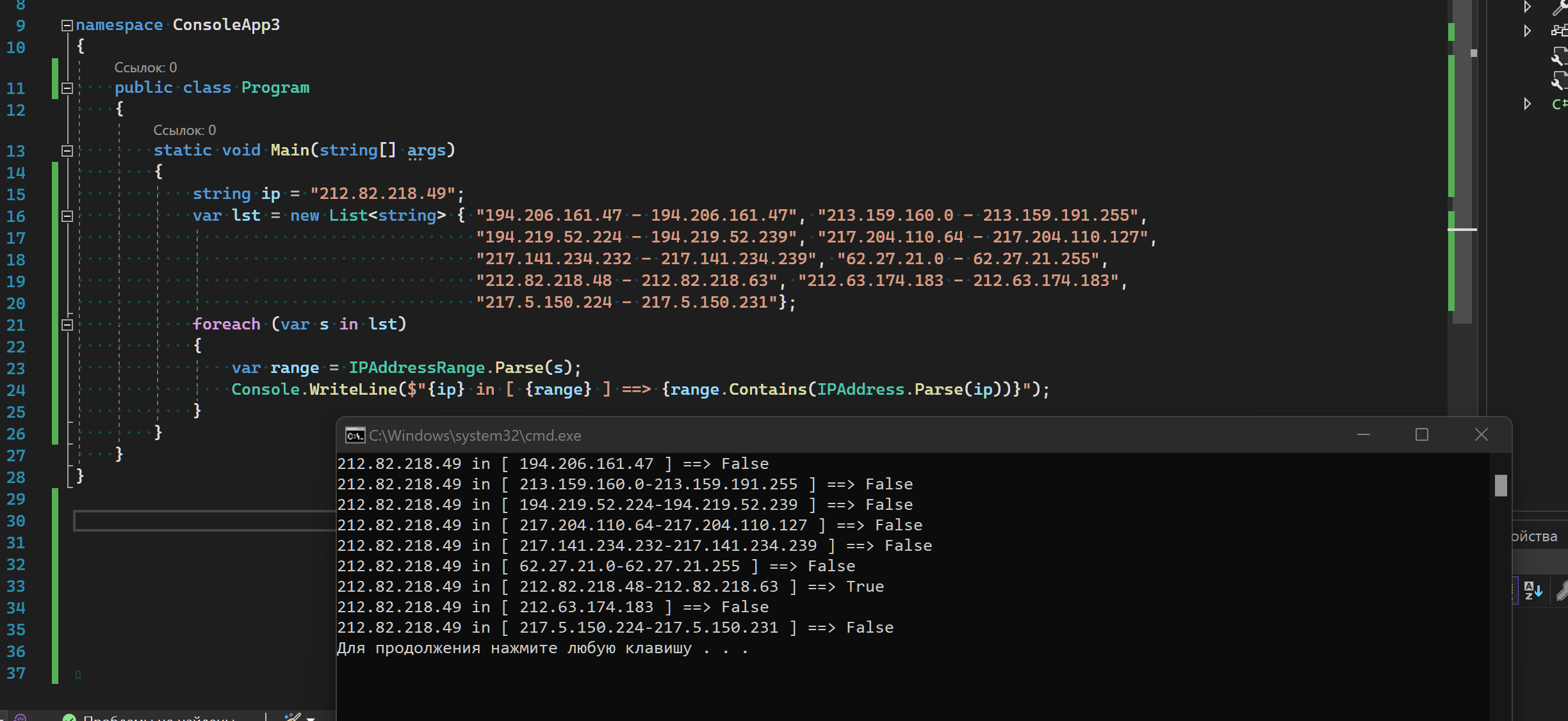 Теперь, у меня есть IP адрес и мне нужно найти диапазон в который он входит