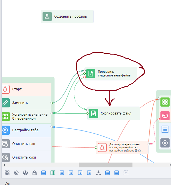 Далее, я поместил в отдельную директорию файлы профилей и закинул туда файл для загрузки этих профилей. И установил проверку файла с именами профилей. Т.е. при очередном запуске шаба, происходит проверка, если файл с именами профилей не находится, значит происходит копирование и перемещение этого файла, для дальнейшей работы. После успешно выполненных циклов, все имена и сам файл профилей удаляется с данной директории. Данный принцип помогает запускать шаблон в ПМ и заниматься своими делами, ожидая успешного прохода шаба по всем аккам. Для наглядности сделал скрин: