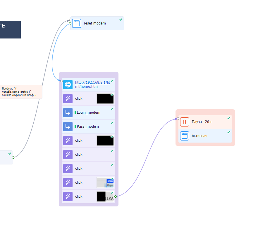 А далее сделал простой блок экшенов для перезагрузки USB модема. Что тоже облегчает жизнь….