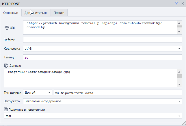 Хочу запустить эту апишку в Зенке, но никак не работает: https://rapidapi.com/ailabapi-ailabapi-default/api/product-background-removal/