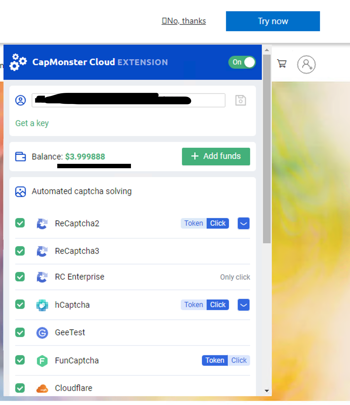 1. Начало, установил расширение, установил прокси, зашел на сайт - и проверяю баланс в расширении
