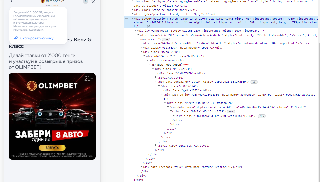 Как с помощью CSS скрыть элемент после #shadow-root(DOM)?