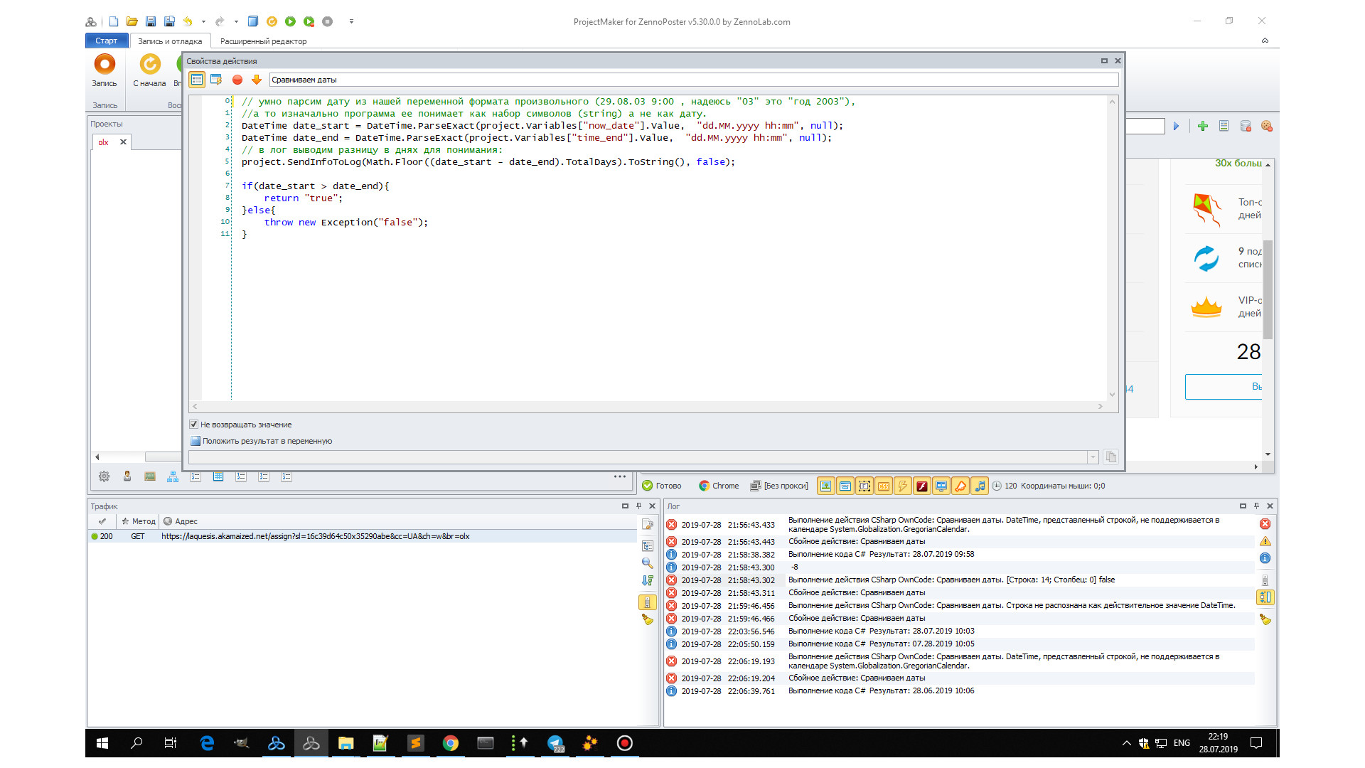 Выполнение действия CSharp OwnCode: Сравниваем даты. [Строка: 14; Cтолбец: 0] false