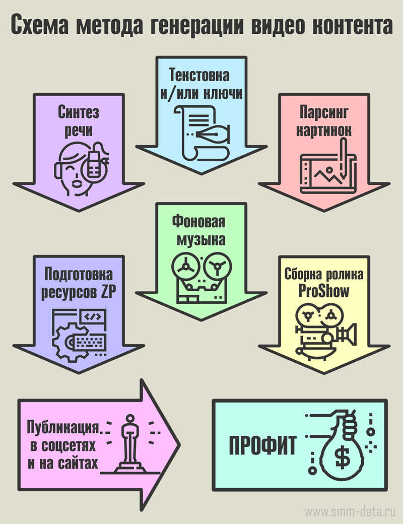 Прежде чем перейти ко второй части статьи рассказывающей о том, как же можно заработать на таких сгенерированных видео-роликах, предлагаю посмотреть видео, где визуально поясняется информация выше.